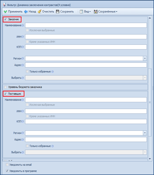 Также вы можете изучить динамику закупок конкретного поставщика или заказчика. Для этого достаточно указать ИНН в поле «Поставщик» или «Заказчик». Или сравнить динамику по нескольким разным отраслям/регионам/компаниям. Для этого используйте блоки «Добавить к сравнению» и «Добавить к сравнению 2».