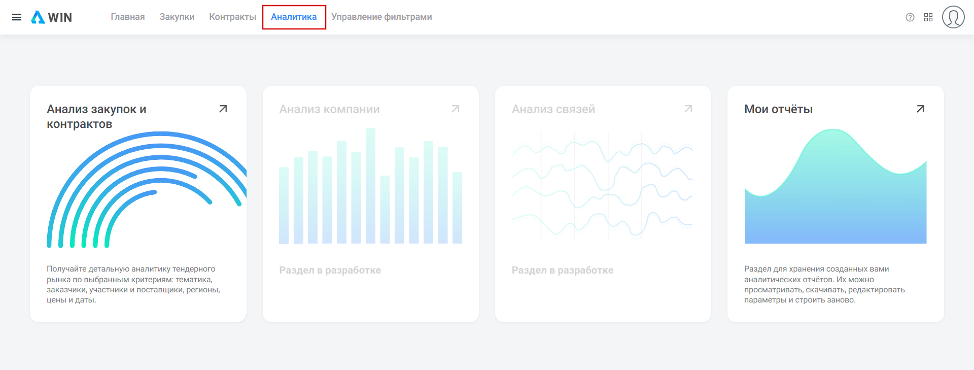 Аналитика - раздел с детализированными отчетами для анализа тендерного рынка. Подробнее в статье.