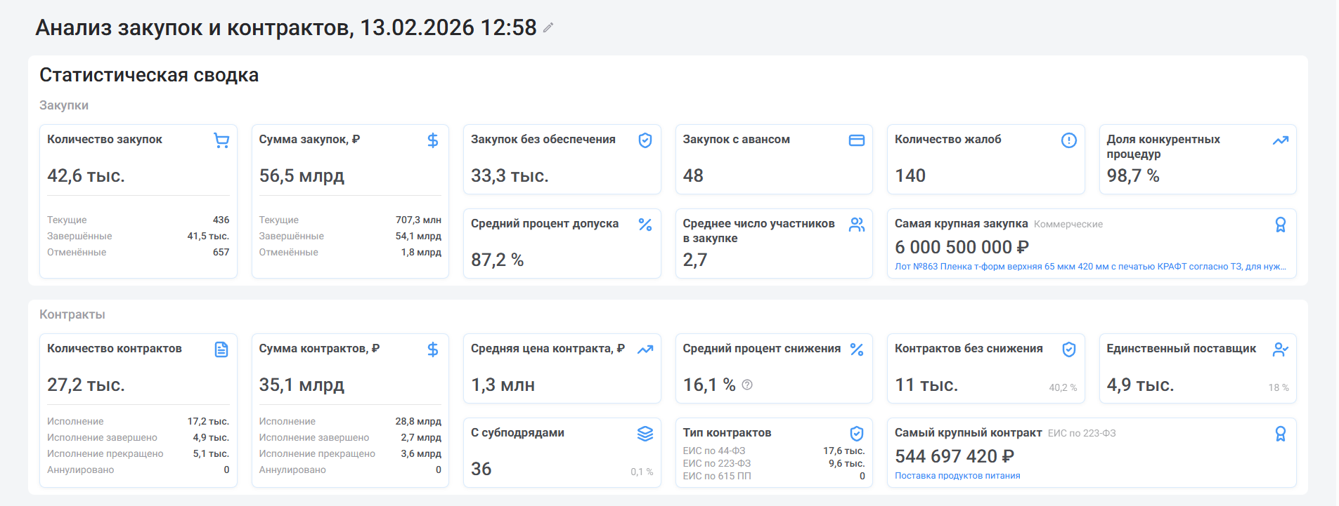 Сводная статистика: 2 отдельных блока по закупкам и контрактам